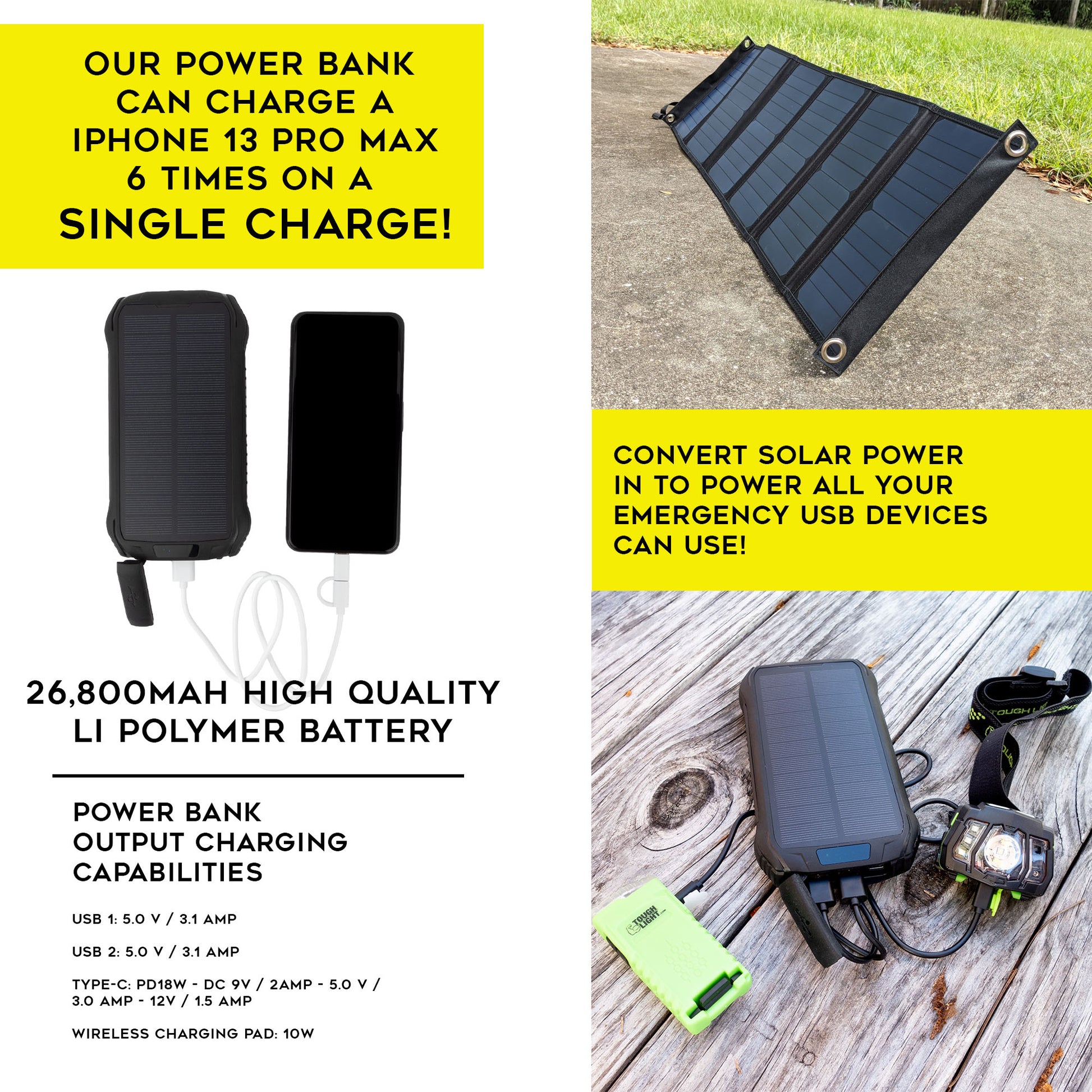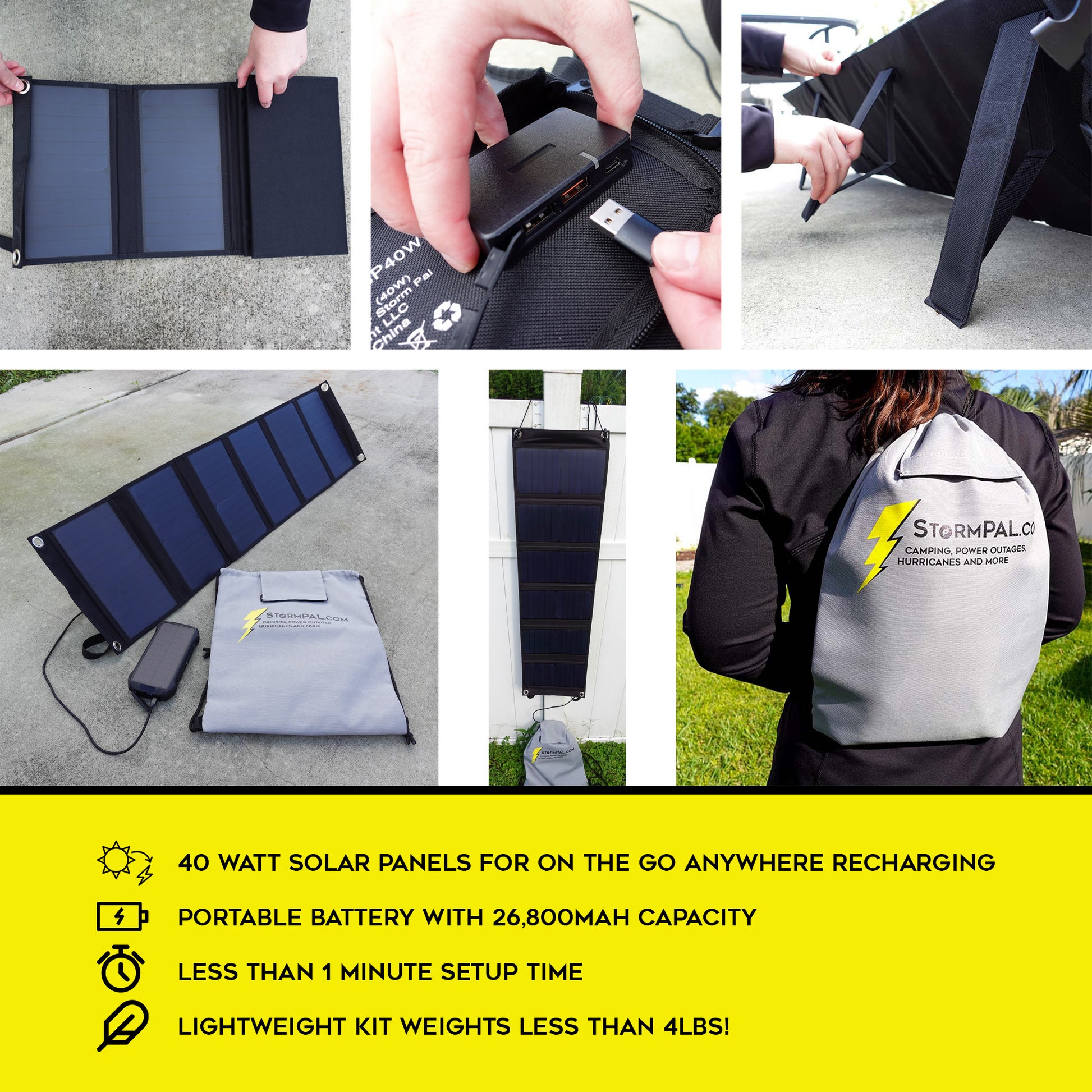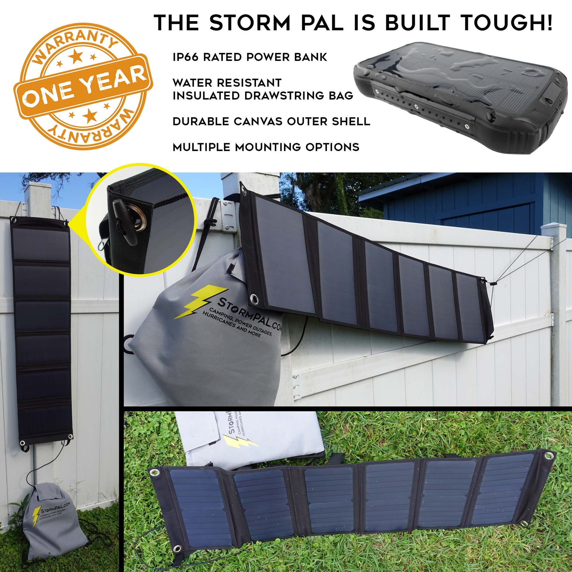 The Storm Pal Pro is a small and lightweight option for your emergency bug out bag. It packs 40W solar panels with kickstands, IP66 water-resistant battery pack, a water-proof durable canvas drawstring bag, and even a heavy-duty 3ft power direct charging cable. With the Storm Pal power will not be an issue when storms come - just pop open this amazing system and bam! You're ready to recharge whatever device you need.