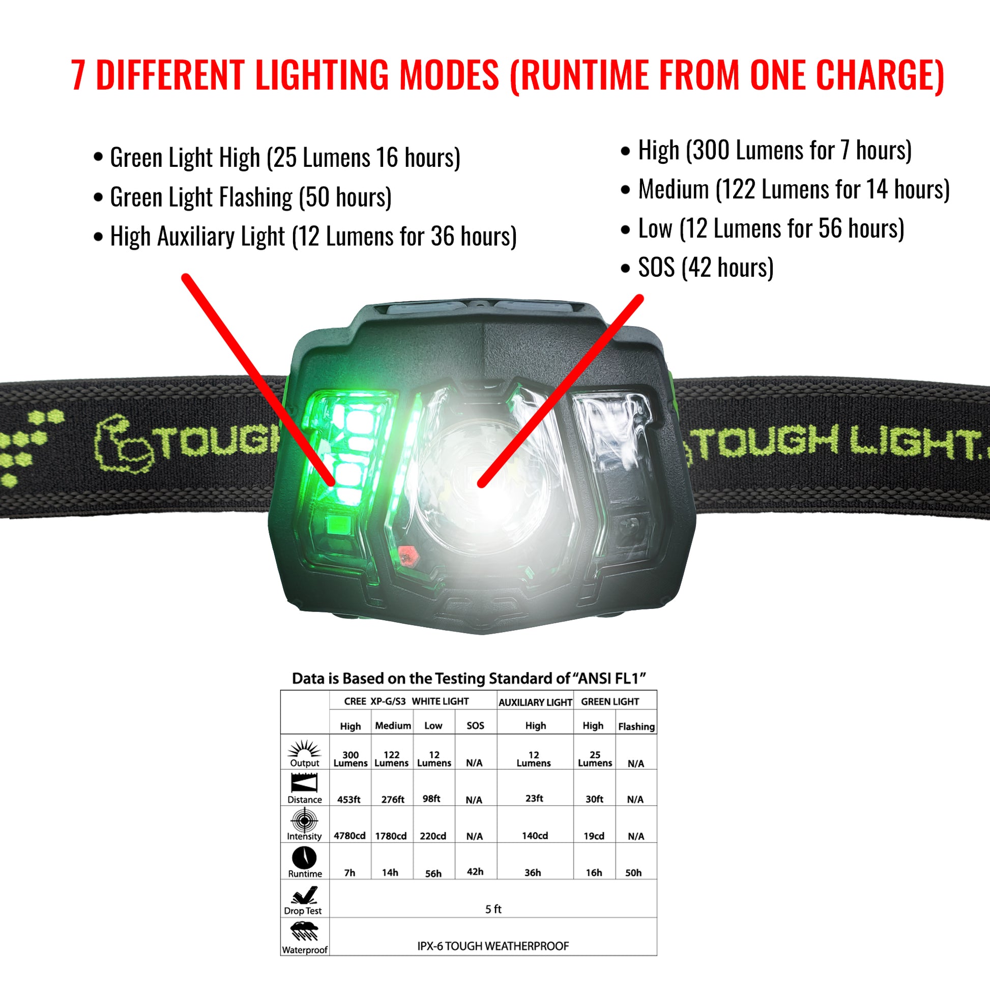 Tough Light USB Rechargeable LED Headlamp - Waterproof