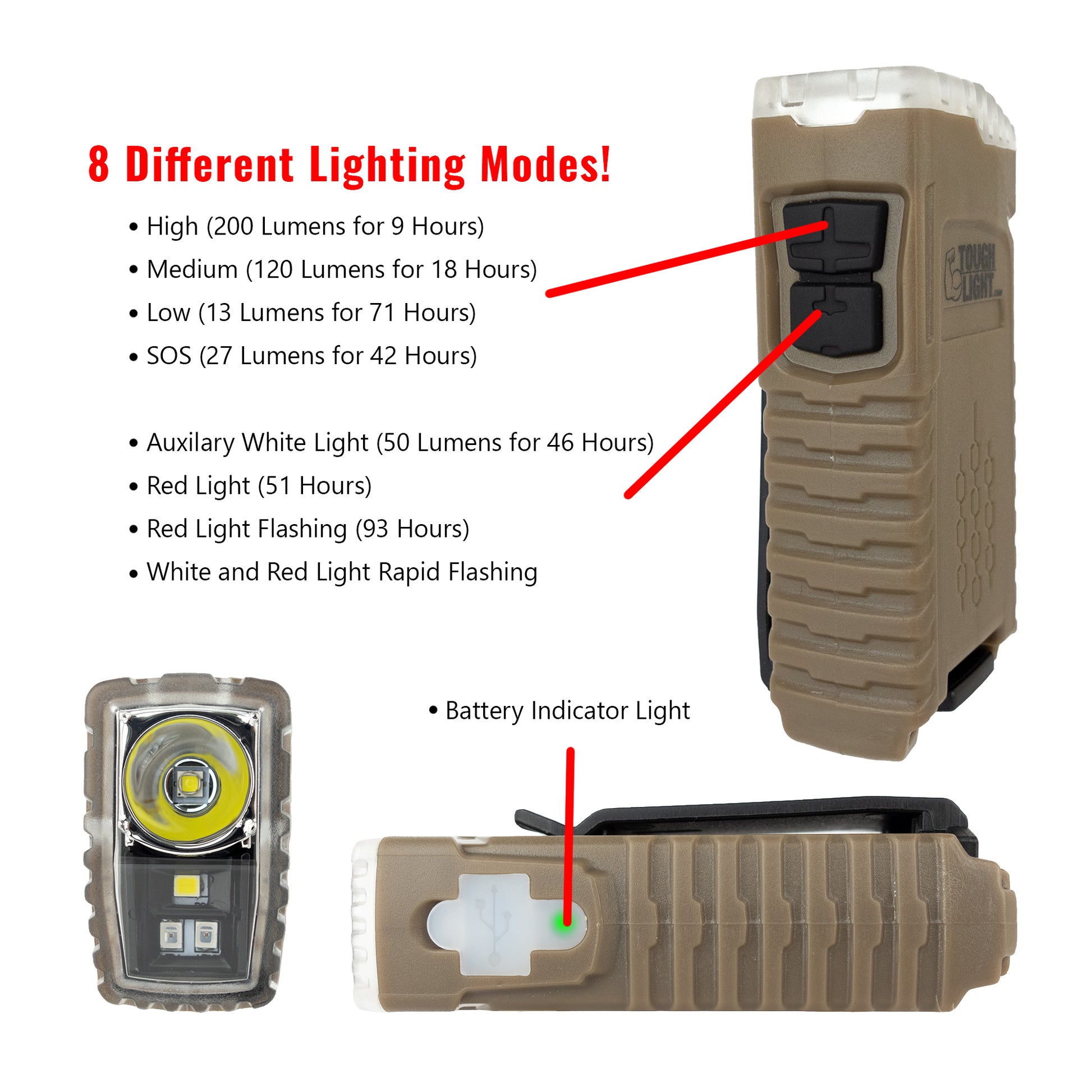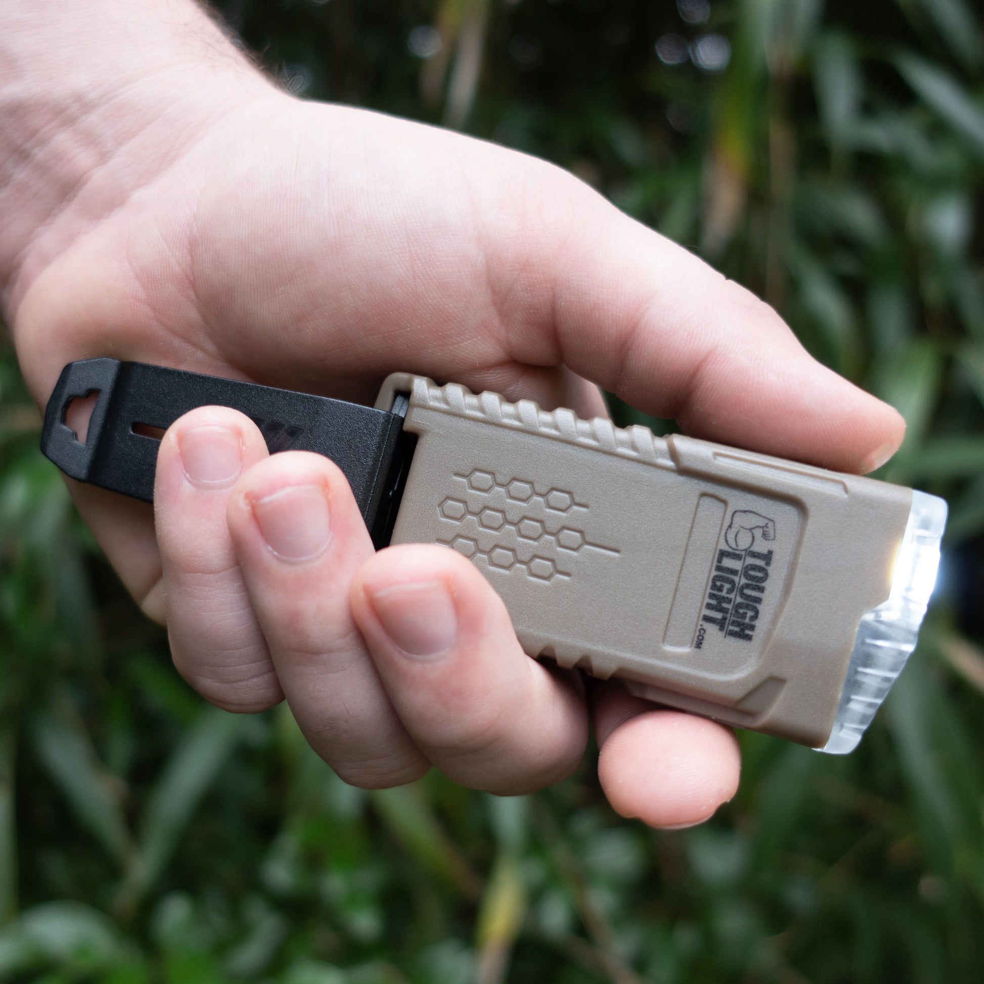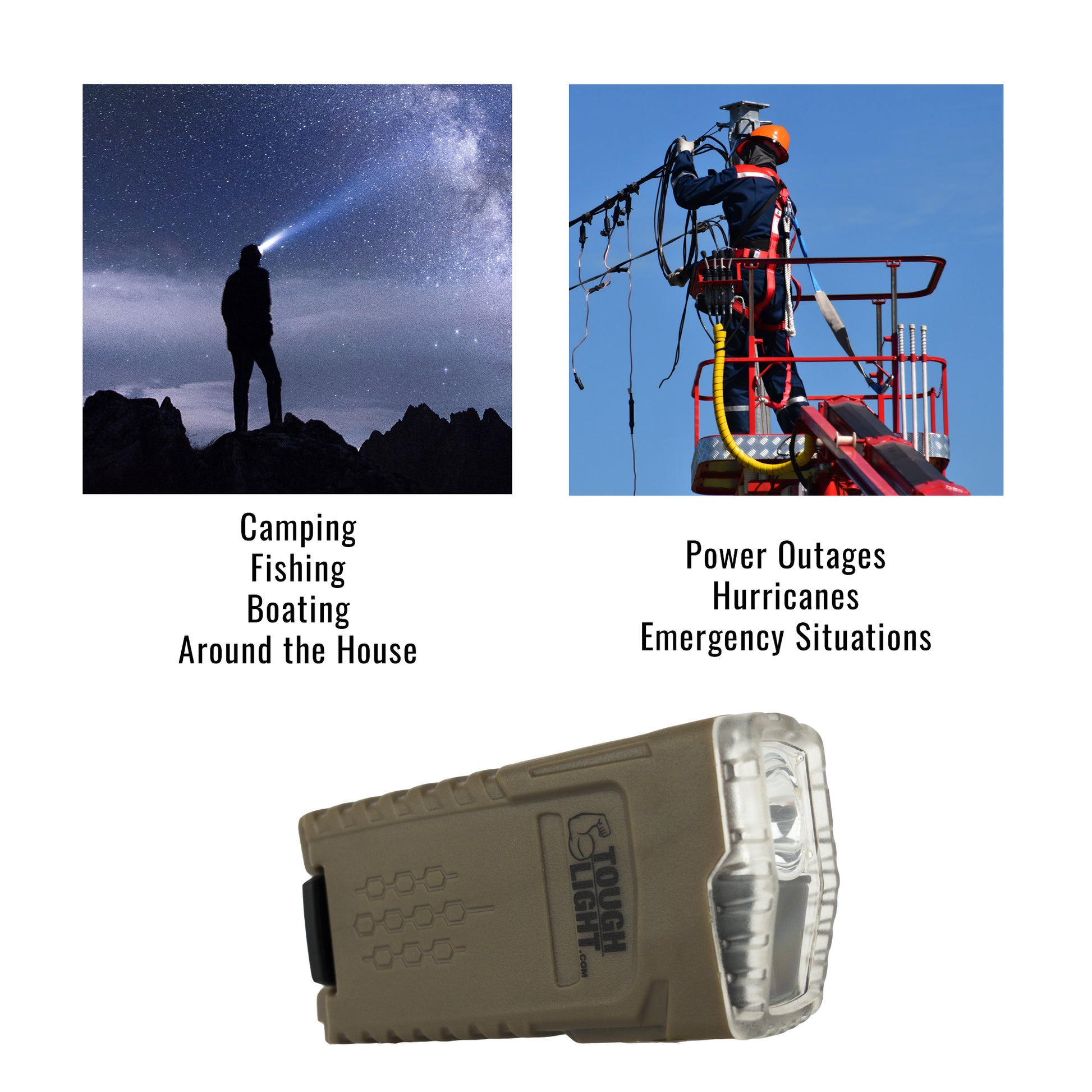 Tactical Advantages over Metal Flashlights: The secret to our ‘Toughness” is the thick plastic molds. Thick molds prevent water intrusion by preventing “sweat” from the inside that can cause moisture damage to the electronic components. Metal flashlights have more interior “sweat” in moist conditions and they sink if dropped in the water. Additionally, the Tough Light F200-LR is much lighter than metal flashlights so carrying it around in your pocket or purse is a breeze. There is also a lanyard wrist rope and a removable belt clip for added convenience.